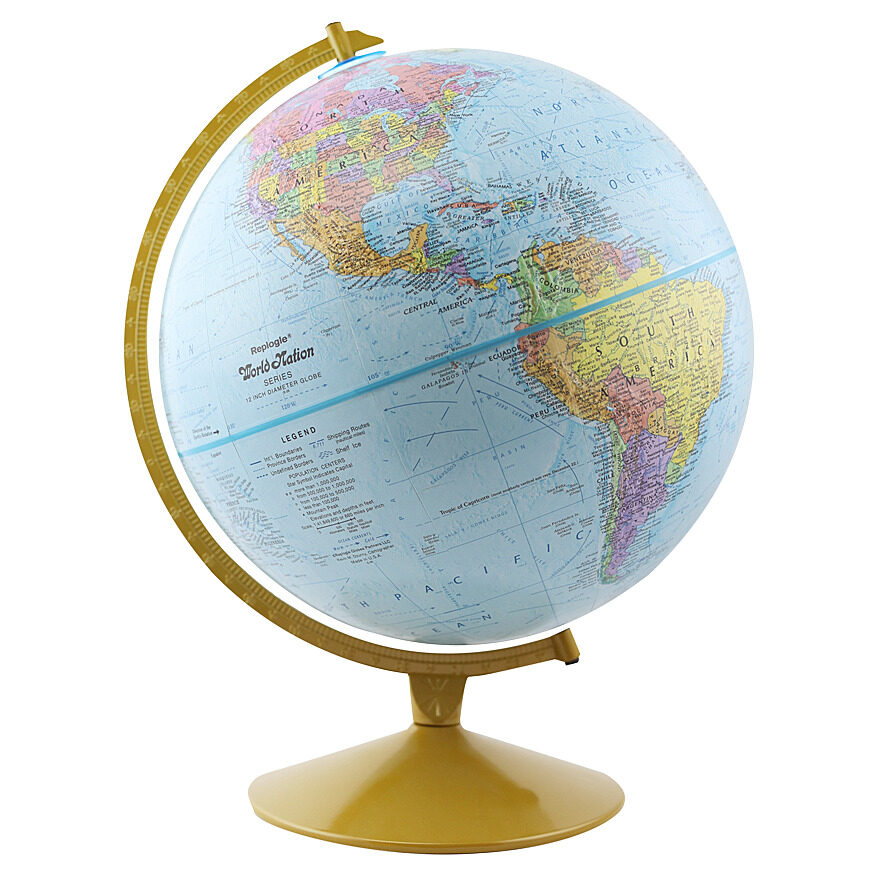 The 12" World Globe is perfect for students and adults of all ages. Whether it is for a classroom or library, the World Globe provides a wealth of geographic information, including country names, capitals, major cities, all major waterways of the world, and more!