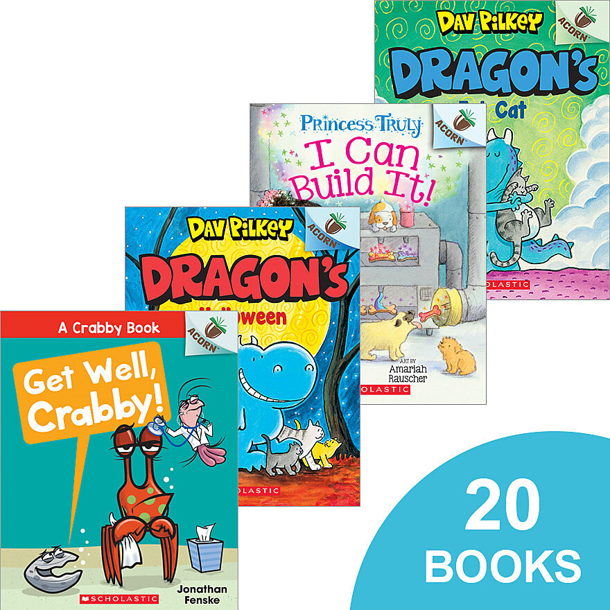 Pack contains paperback copies of the first five books in four favorite Acorn series. Series include: Crabby, Princess Truly, Dragon, and Unicorn and Yeti.