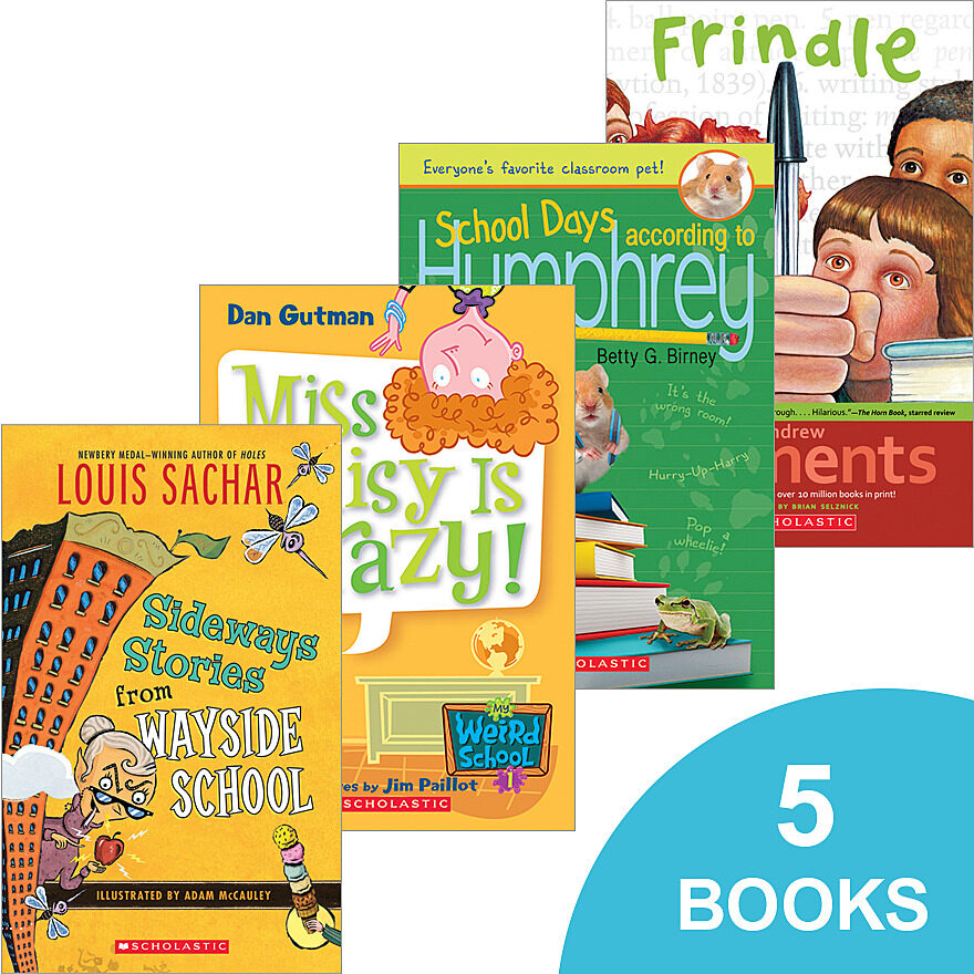 Get ready for back to school with this value pack of 5 books from beloved authors Andrew Clements, Dan Gutman, Louis Sachar and more! Pack includes Frindle, My Weird School Miss Daisy is Crazy, School Days According to Humphrey, Sideways Stories from Wayside School and Unschooled.