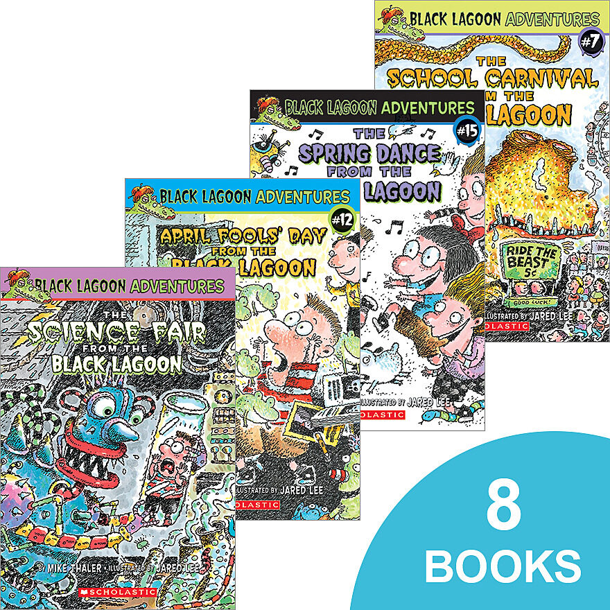 This value pack of titles from the bestselling Black Lagoon series by Mike Thaler and Jared Lee is filled with school, monsters and common kid problems with hilarious results. This pack features hijinks from a Spring dance, science fair, field day, pool party. April Fool's Day and more!