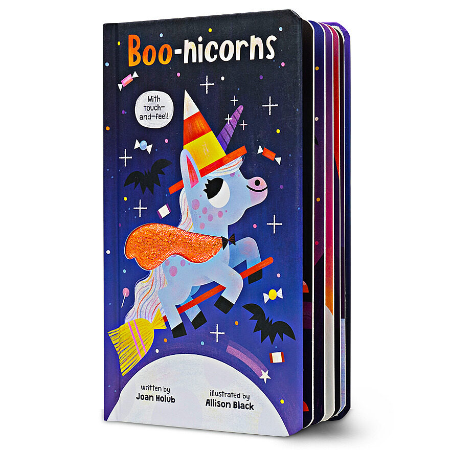 Unicorns put on silly costumes and go trick-or-treating in this engaging board book with touch-and-feel textures on every spread.