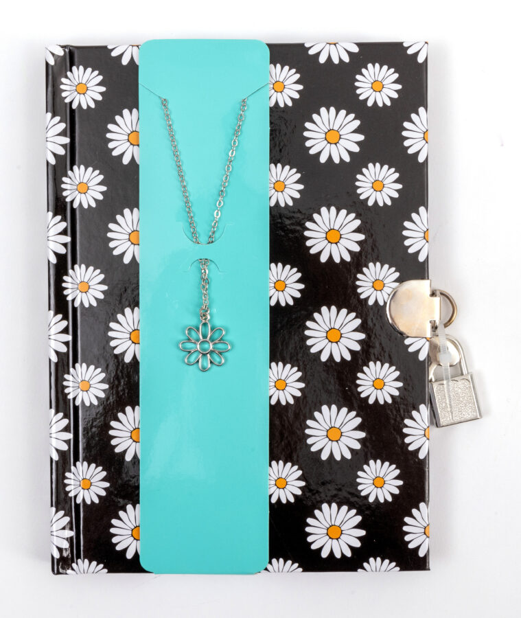 Dream of daisies all day long and let your thoughts blossom with this one of kind diary that comes with a flower necklace.