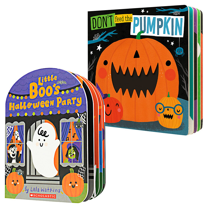 Two spooktacular board books to celebrate Halloween! Find out why you shouldn’t feed the pumpkin in this spooky rhyming book. Join Little Boo’s Halloween party and step inside the haunted house to dance with Skelly the skeleton, sing karaoke with Frankie the monster, and party up a fright!