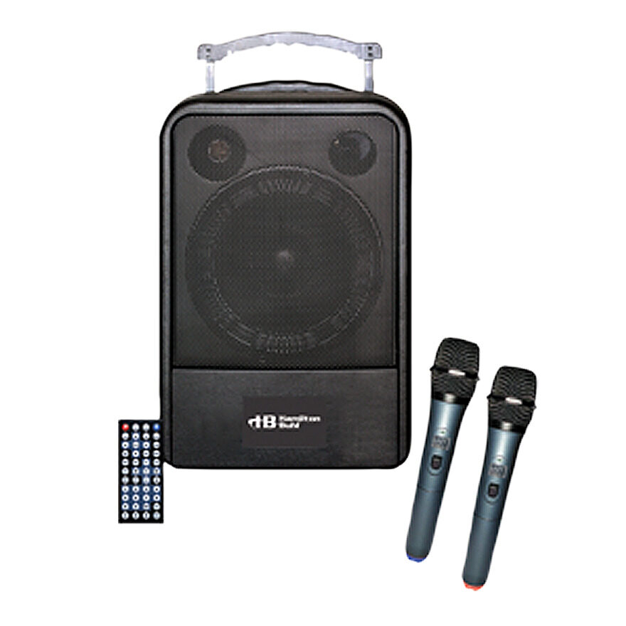 A must-have for school events, this PA system features a Bluetooth receiver and a DVD/VCD/MP3/CD-R/RW player. Includes two handheld wireless microphones and a remote control.