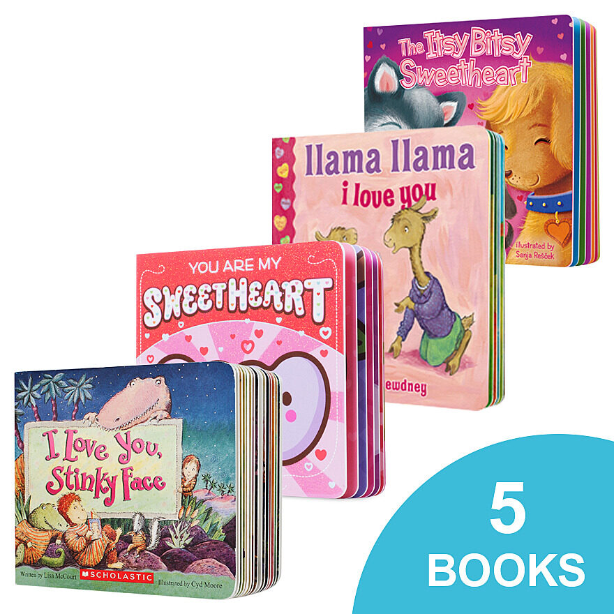 Snuggle up with these sweet stories about love! This value pack includes 5 lovable board books: I Love You Stinkyface, Llama Llama I Love You, Kisses and Cuddles, You Are My Sweetheart and The Itsy Bitsy Sweetheart.