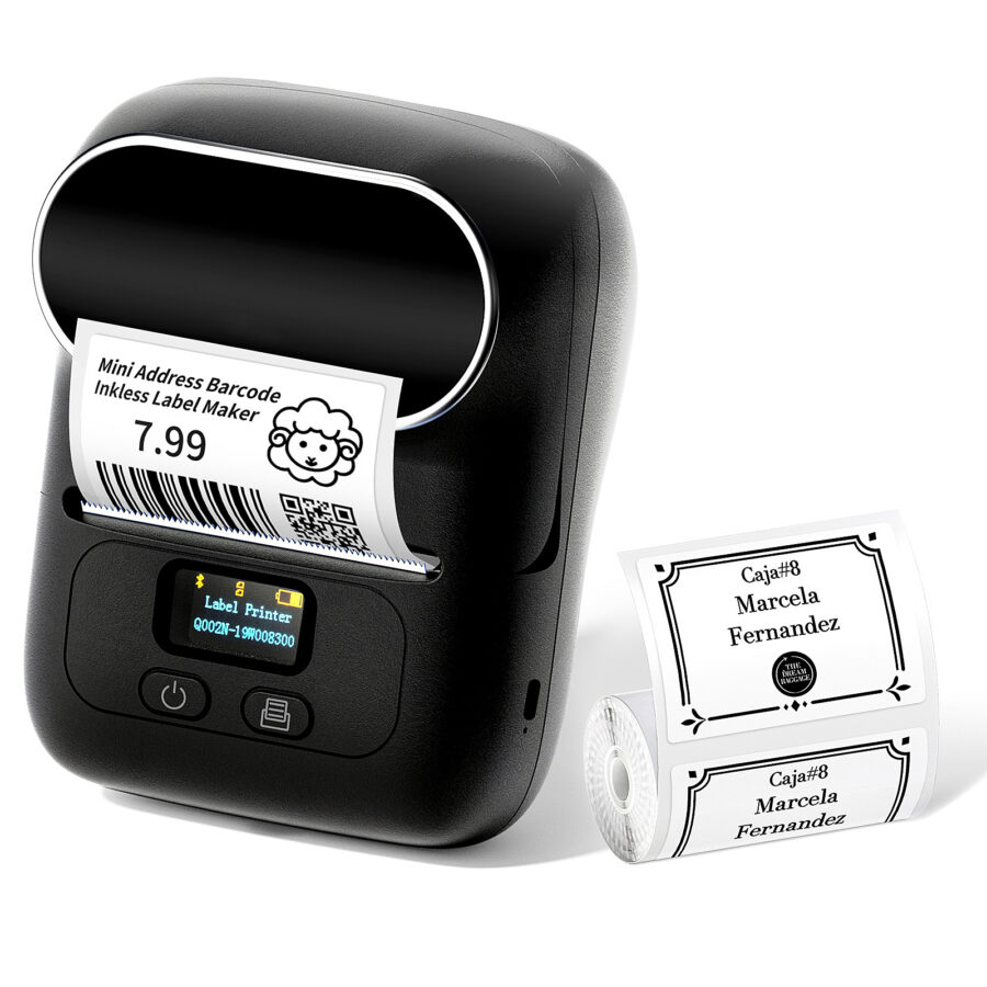 Measures 4.5"L x 3.4"W x 2.4"H. Includes 100 labels. Compatible with thermal printing labels.