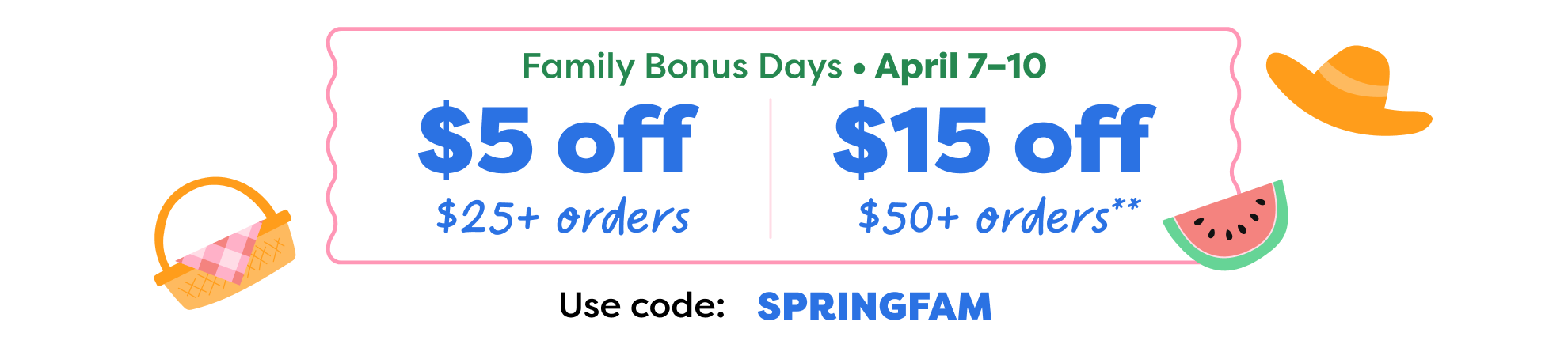 †To choose your free up-to-$5 item, place your family order online and enter the promo code READS on the Review Your Cart page. Free up-to-$5 item promo is valid with Clubs orders of $25+.