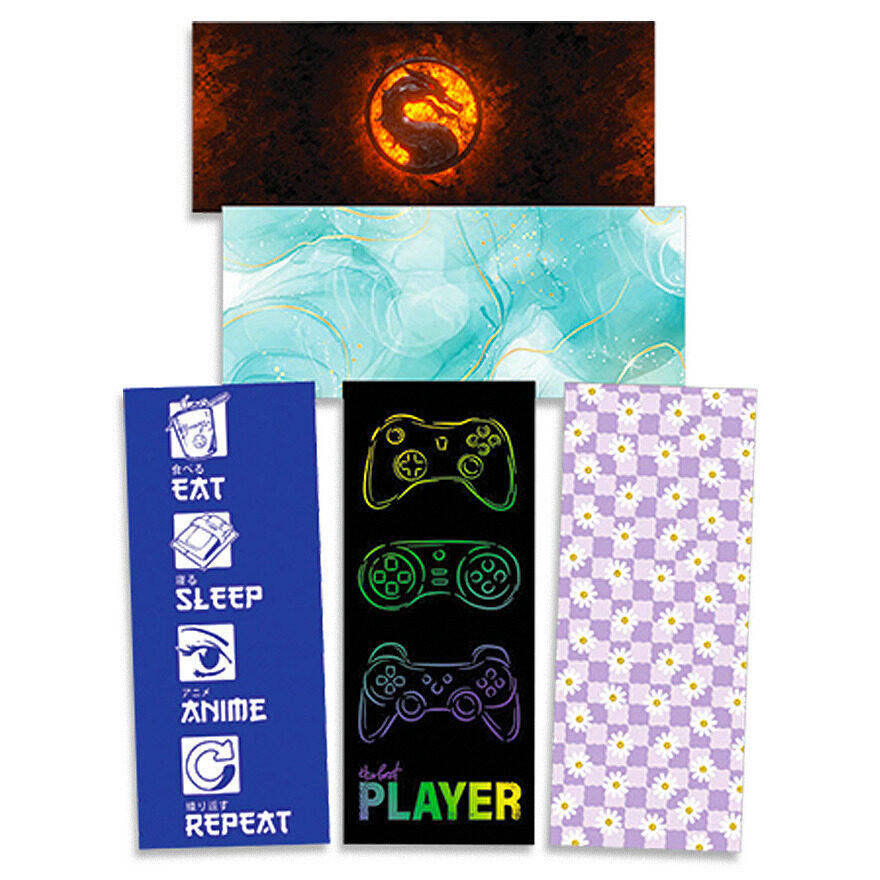 Pack includes 90 bookmarks, 18 each of five designs. For ages 5+.