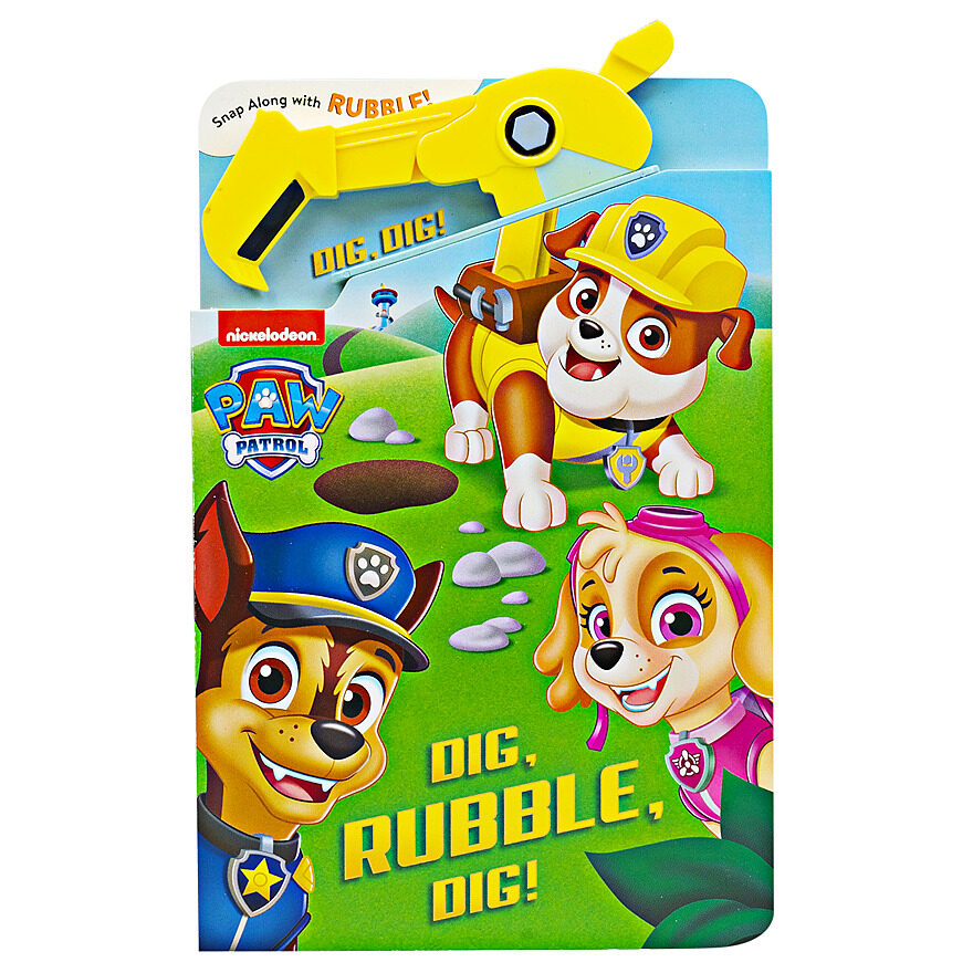 Rubble helps baby turtles cross the road and gives bunnies a ride in this interactive board book with a plastic snapping digging arm on top.
