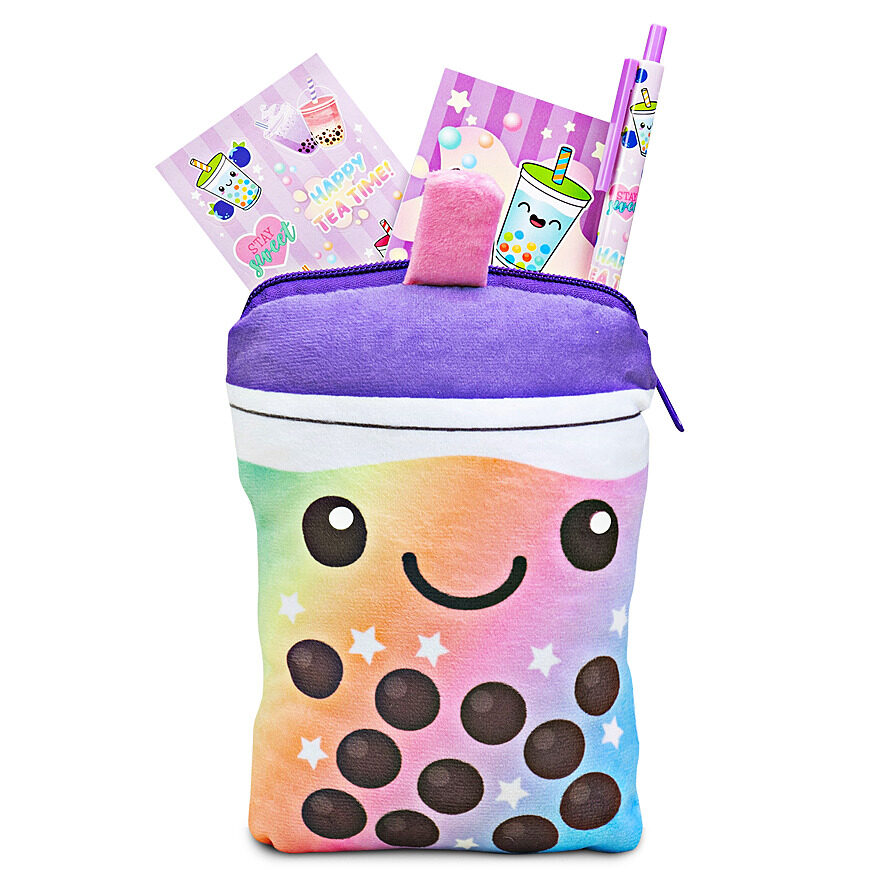 This adorable bubble tea pouch contains a notepad, sticker sheet, and mechanical pencil.