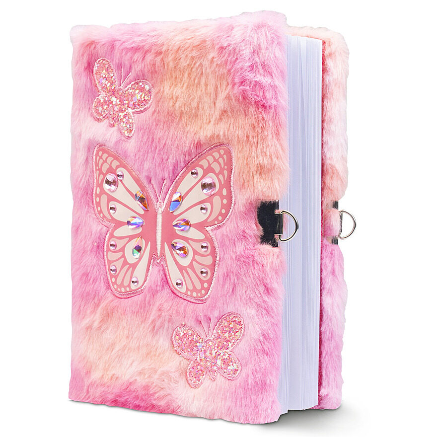Your imagination is sure to soar on the pages of this furry butterfly diary with twinkling rhinestones. Includes lock with two keys.