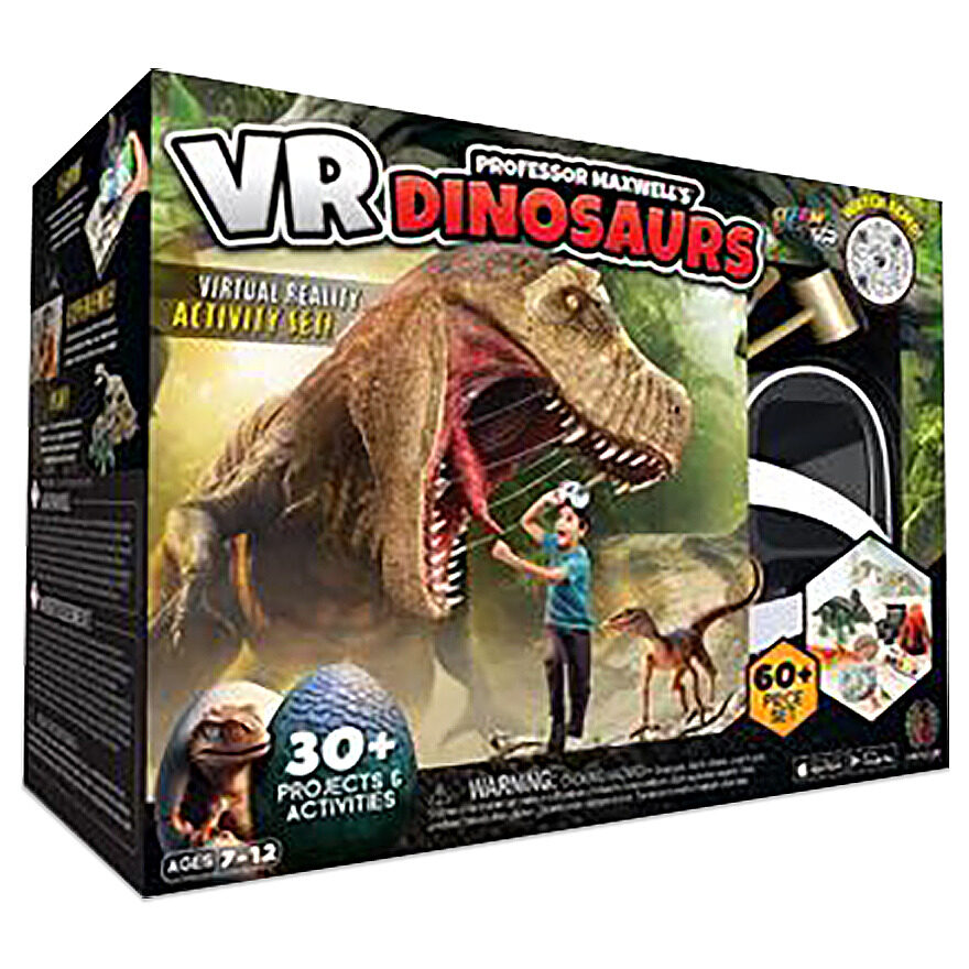 Give kids an immersive learning experience using virtual reality! Explore the science behind how the largest land animals that ever ruled the world with over 30 immersive activities. Step-by-step videos help kids build their confidence. This 60-piece set includes one pair of hands-free goggles. As of October 2024, all smart phone mobile deices fit into the goggles, included plus-sized phones. Not compatible with tablets.