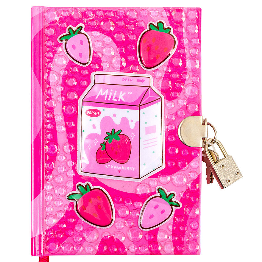 Keep all your thoughts under lock and key in this cute, sparkly strawberry milk diary!
