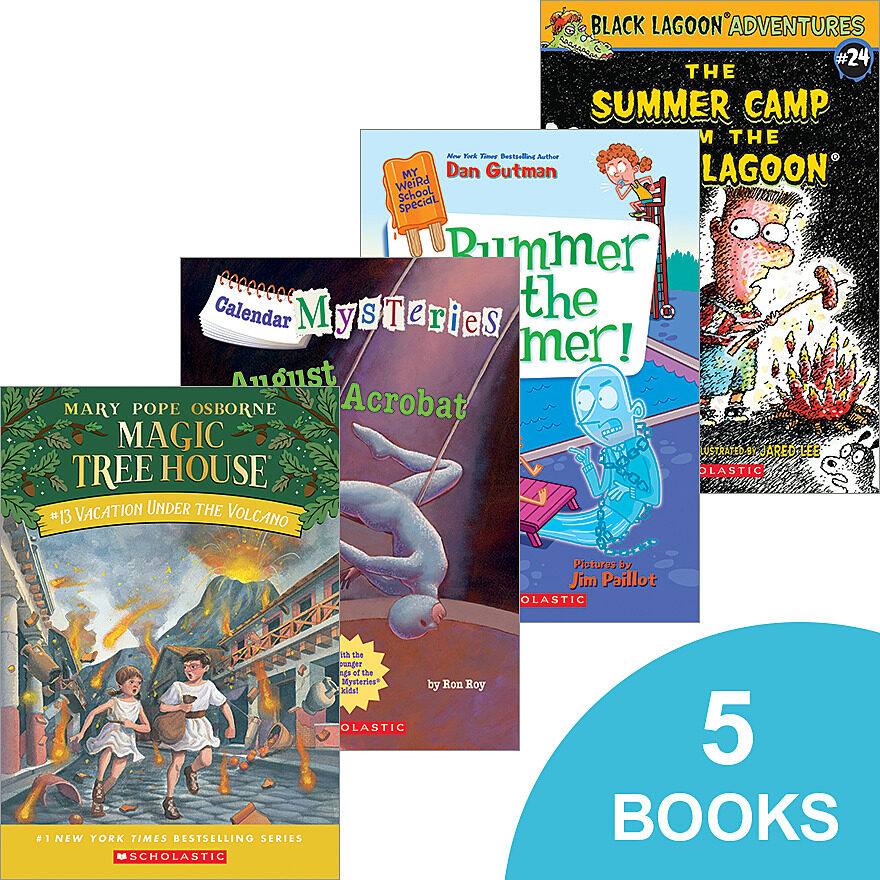 A 5-book pack featuring titles from bestselling series My Weird School, Junie B. Jones, Black Lagoon, Calendar Mysteries and Magic Tree House. Perfect for summer reading!