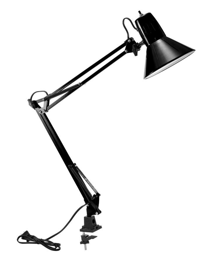 Easy to clamp onto your desk or any other surface! Adjustable arm extends to 36”H. Lightbulb included.