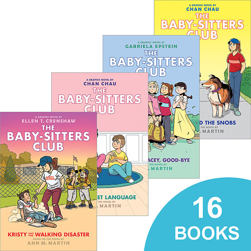 Introduce a new generation of readers to the members of the Baby-sitters Club with these graphic novel adaptations. Crank calls, toddler tantrums, and wild pets—it’s all in a day’s work for these busy babysitters! Set of 16 full-color library-bound graphic novels, 160–176 pages each.