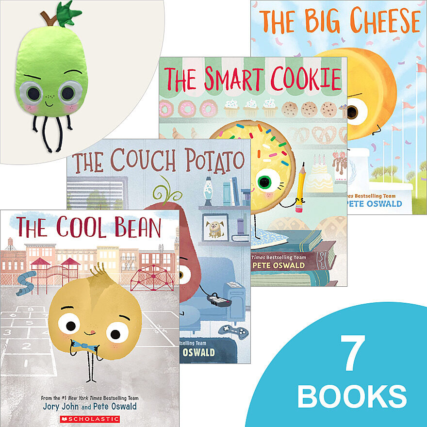 Pack includes seven paperback books and six plush pals measuring 8"H to 20"H.